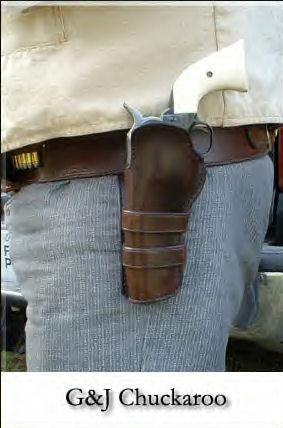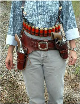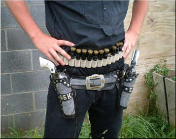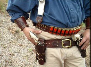 | ACCESSORIES *Holsters and Belt. *Must be of period design and material, no Velcro, nylon or modern materials. Drop Loop, Cross Draw w/Drop, Cross Draw w/straight, Straight, Shoulder *Need two holsters, can be one strong side and one cross draw or two strong side. Gunfighter Category requires two strong side holsters. *Gun belt. Recommended with bullet loops. Of period materials, no Velcro, nylon or modern materials. Drop or buscadero holsters not allowed in Classic Cowboy category. *Cross draw holster must be at no more than a 30 degree angle. *Cart (Not required but highly recommended) Cart 1 Cart 2 Cart 3 *For carrying long guns securely, gear, ammunition, water, rain gear, tools. *A place to sit. *Cartridge Carrier *Belt loops on holster belt. *Ammo slide over belt, must be of period materials. *Shotshell belt, slide or separate belt for holding shotshells. . *Shotshell belt cannot have metal sleeves. Must be worn at or below belly button. *Bandoleers OK. *Bandoleer cannot be attached to belt. *Safety Items *Shooting Glasses (GOOD ONES!, Side protectors highly recommended) *Ear Protection |